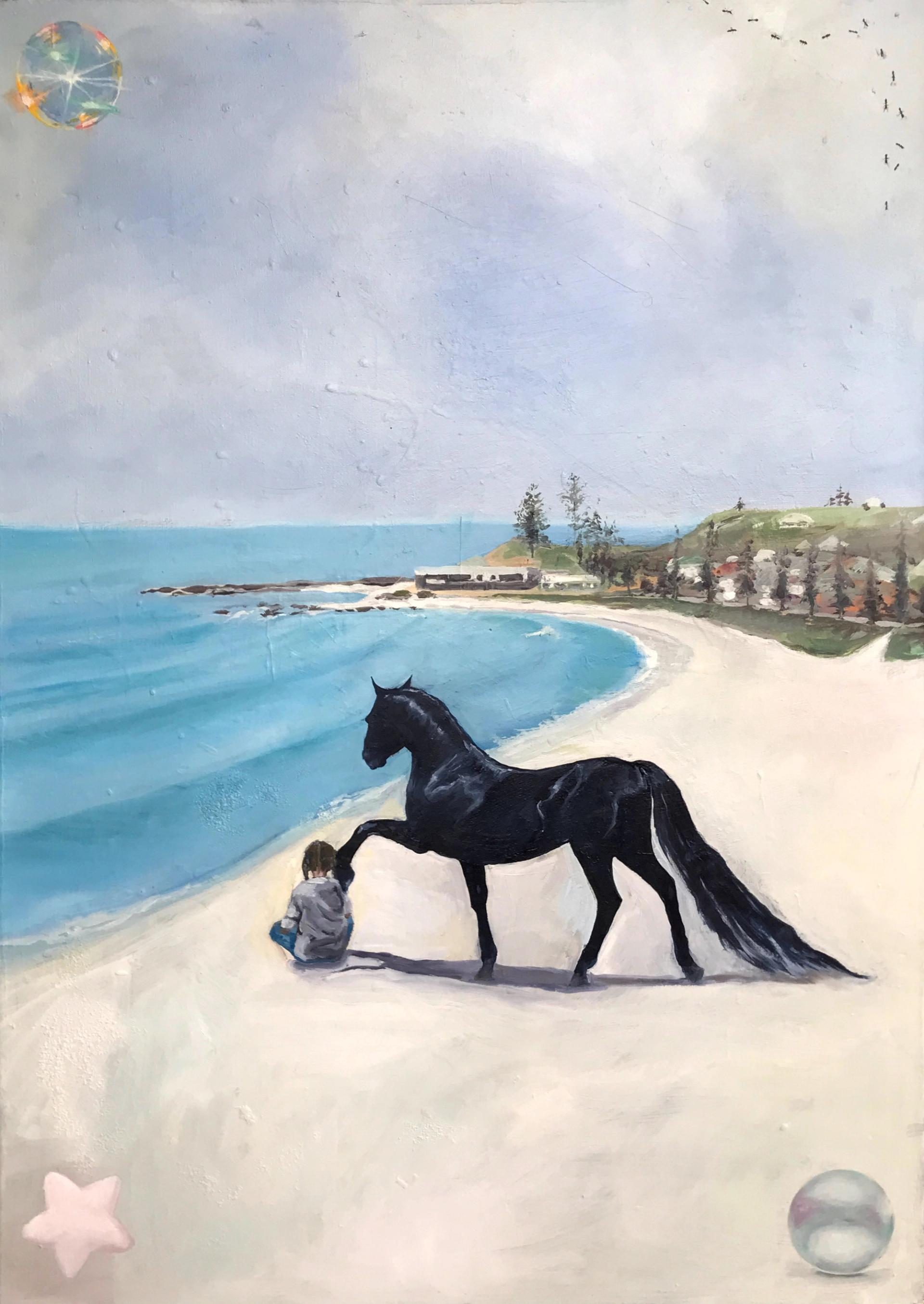 Jenna Winship (b. 1988) is a French-Australian contemporary artist. Her playful figurative landscapes reflect an unconventional upbringing and multicultural background, exploring psychological, physical, and cultural connections between humans and the environment. With a focus on grief, motherhood and identity as a Third Culture Kid, Winship's paintings transform real places into fictional landscapes. She transports to a realm of introspection, where personal and collective memories intertwine. Nostalgia becomes the catalyst, illuminating cultural intricacies and the yearning for belonging. By intertwining culture, environment, and nostalgia, Winship’s art fosters connection. It serves as a visual bridge, inspiring appreciation for diversity and the delicate harmony between humanity and the environment.