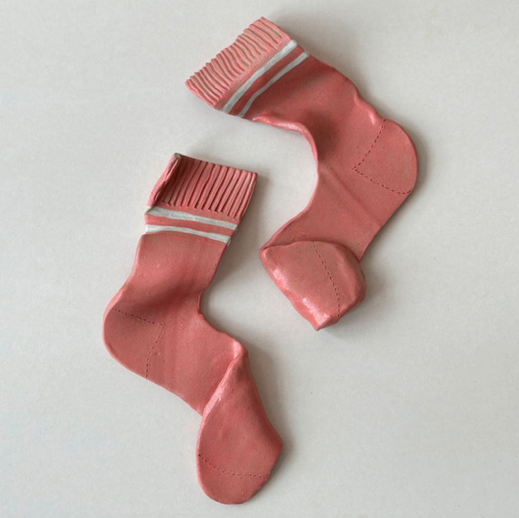Flore Faucheux is a multidisciplinary artist, trained outside of academic circuits. Since 2020, she has dedicated her practice to ceramics, working with stoneware in an unconventional way. With prolific flow, solitary production methods, and a blend of diverted scales and comedic results, she reimagines and recreates the artifacts of our time. Flore Faucheux organizes her life in a cyclical fashion. She alternates between long-term travel and committing to residencies in creative spaces – occupying many places that enrich the repertoire of all the mundane and magical things she sees and captures. Currently, she works at Sous Terre[1] to bring out the markers of our time. By reproducing the packaging of objects, she highlights modes of consumption and existence specific to our society in the here and now. A way for the artist to find in her practice a space of her own that can be communicated and understood by everyone. By choosing visual elements that characterize the places she passes through – a cigarette packet on an empty table, a dirty sock stranded in the corner of an apartment, a discarded lottery ticket tossed on the sidewalk – she glorifies these phantom objects and draws up a meticulous inventory of a world in the full bloom of transformation. Her colourful and shiny pieces rewrite the relationship we have with everyday objects and their uses - offering a delicate awakening to the poetry of possession. [1] Ceramic studio located in the 10th arrondissement of Paris.