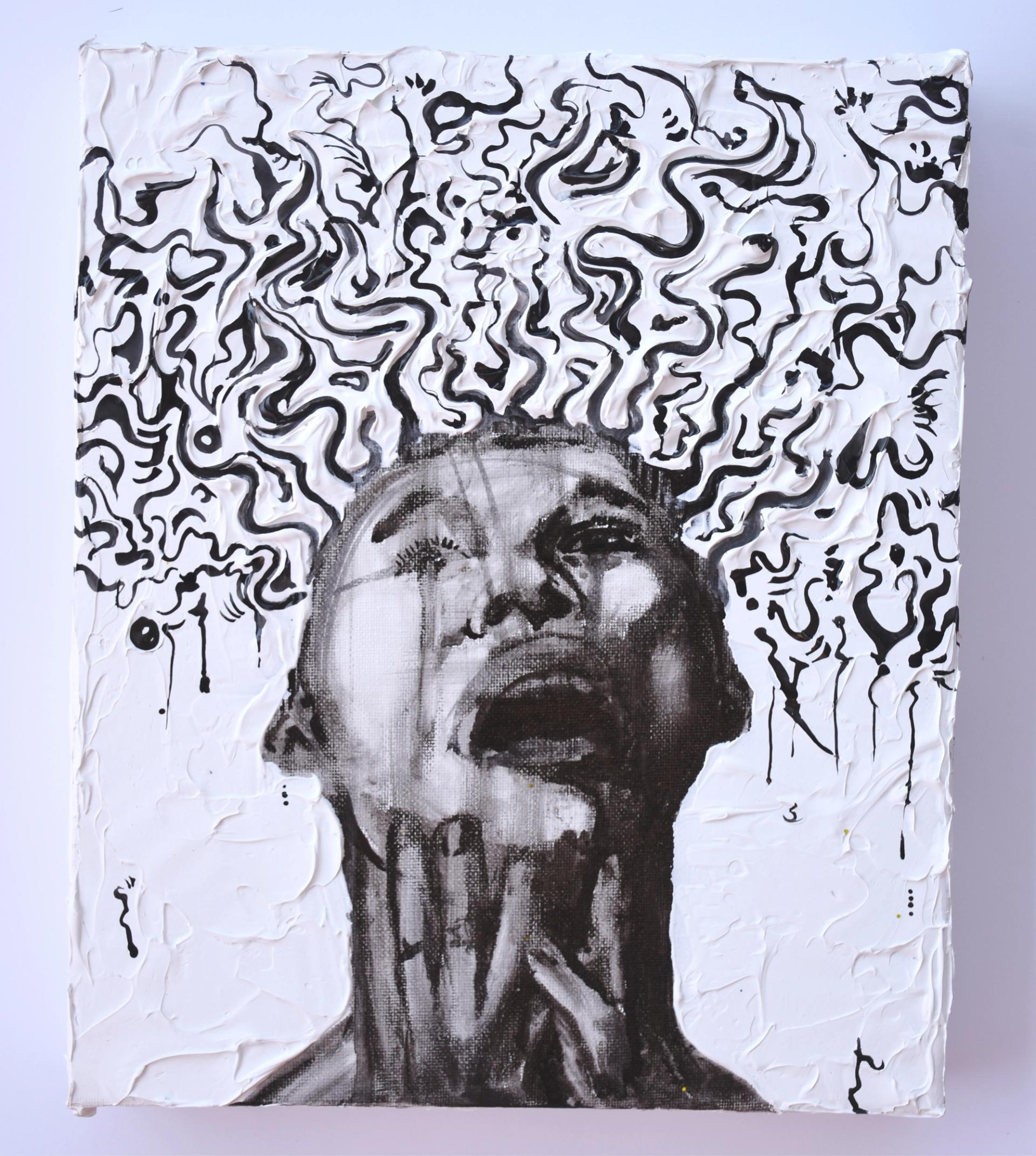 2023 Modeling paste, ink and acrylic on canvas 300 mm x 250 mm