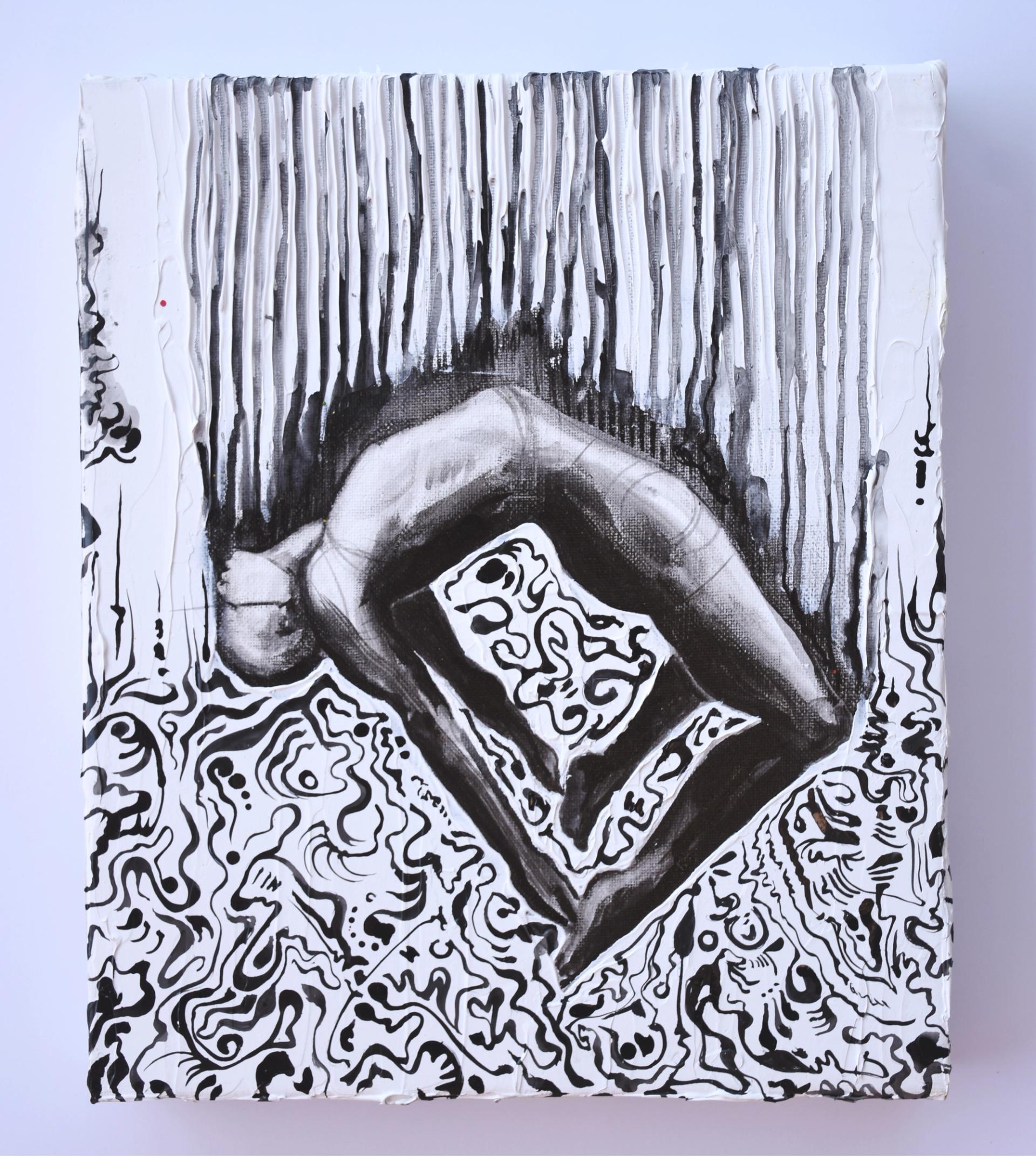 2023 Modeling paste, ink and acrylic on canvas 300 mm x 250 mm