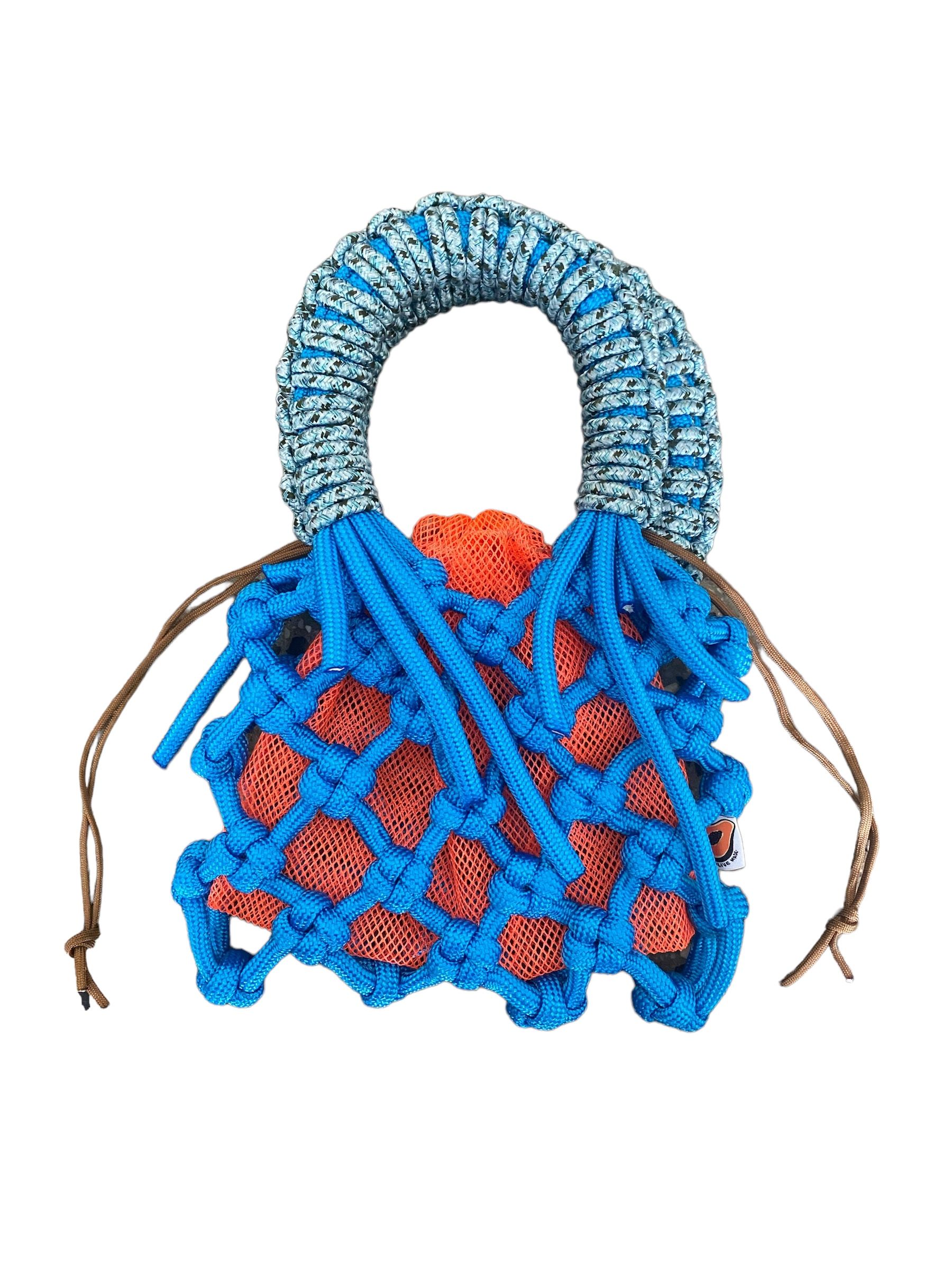 2024 Blue rope with a baby blue/green handles and an orange mesh drawstring pouch 230 mm x 400 mm