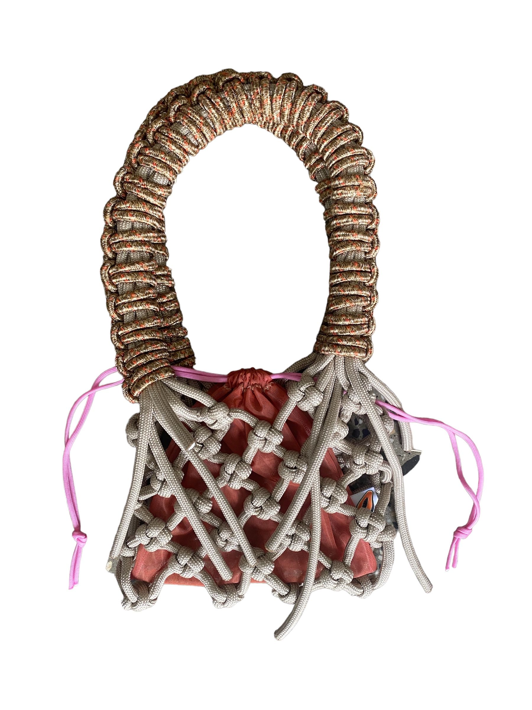 2024 Beige rope with brown/pink straps and a red drawstring pouch 260 mm x 500 mm