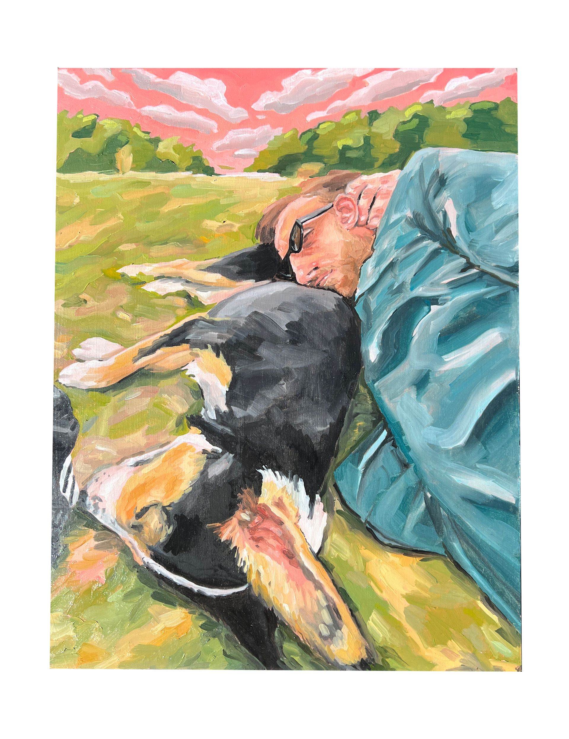 We walk through white and yellow sand. When we stop to rest, they both fall asleep around me like a warm cocoon of safety. I sit and watch. I sit and listen. My mind goes quiet for a brief few minutes. Sweet relief. Sophia Mary Mac is a multidisciplinary artist based in the Northern Rivers / on Bundjalung Country. She primarily works with oil paint and fine-line ink drawings. Her work explores visceral memory, using painting as a cathartic process to linger within memories and the passage of time. Sophia aims to highlight the spaces and moments in between, a kind of limbo or mundane purgatory. Her practice invites viewers to reflect on the subtle transitions and quiet interludes that make up our everyday lives.