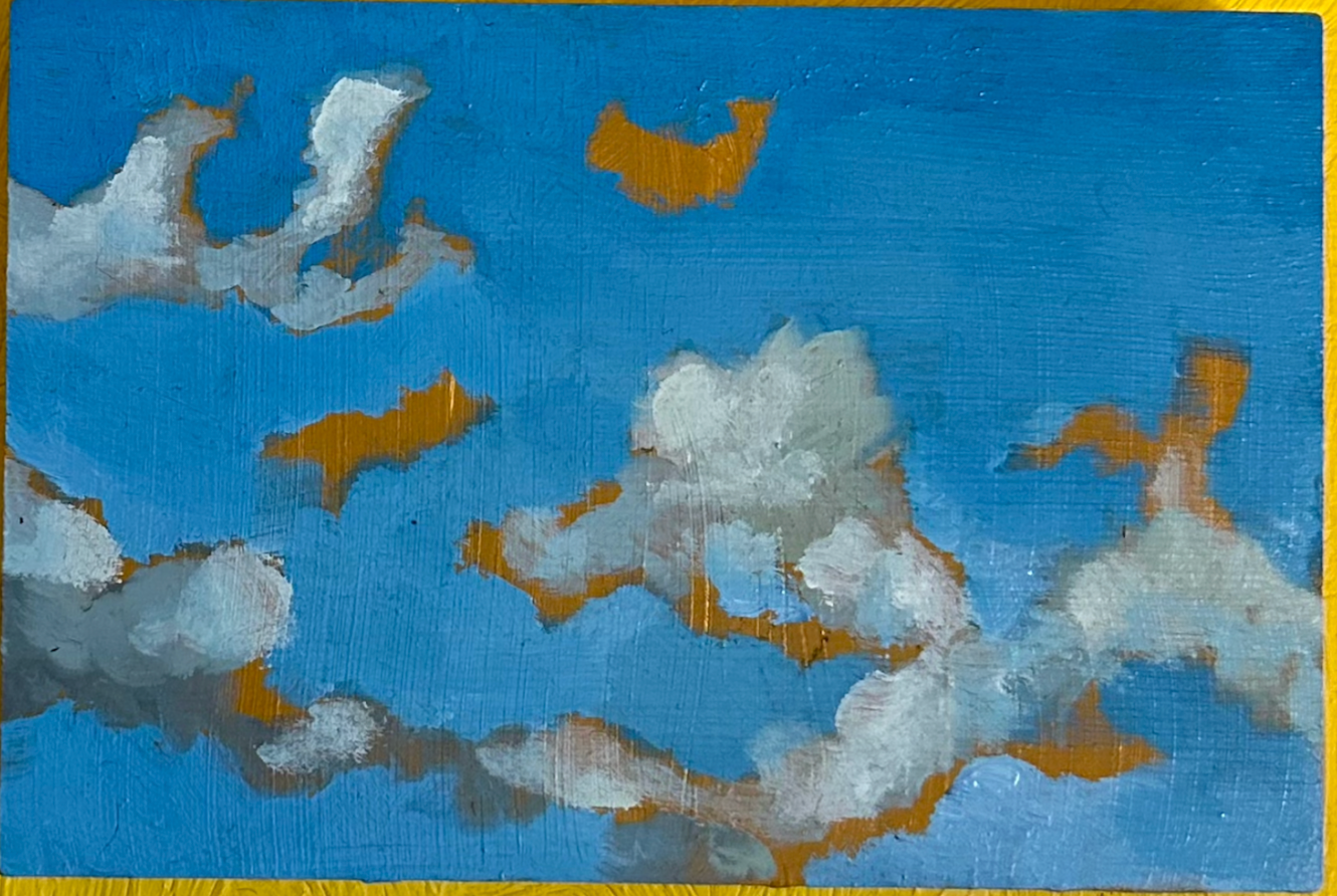 Lisa Tran Kelly (The Moon Gallery) is a multidisciplinary artist and harpist (Lake Kelly) currently practicing in Palm Beach. Lisa has a focus on creating reflective art projects that explore the human relationship to nature, the subconscious and impermanence. Drawing from her therapeutic practice, her visual practice explores the intersection of art, wellbeing, and recovery. Clouds as thoughts is a common therapeutic metaphor for becoming more mindful of the thoughts that pass through our minds day to day, imagining ourselves as the steady and constant Observer behind the clouds; an always blue sky ready to emerge once the weather passes.